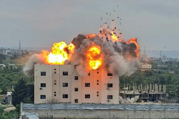 Israel has also been striking Lebanon, here hitting a building in the southern Lebanese village of Abbasiyyeh on Friday