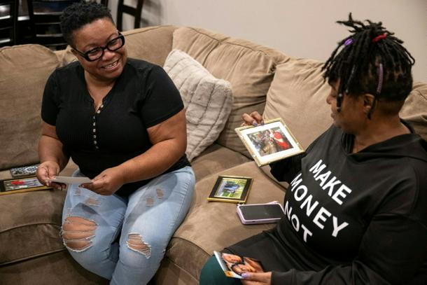 Reba Paul (L) and Stephanie Fairweather share memories of their late brother Denton Loudermill Jr. in Olathe, Kansas