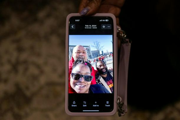 Stephanie Fairweather attended the Kansas City Chiefs' 2024 Super Bowl parade with her brother Quincy Loudermill (R) and late brother Denton Loudermill Jr.