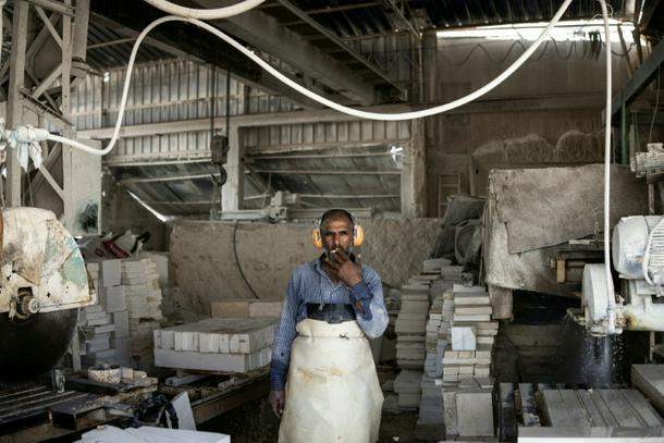 “We are working ourselves to death,” Atrash said, pointing to his ten labourers moving back and forth in monumental pits where clouds of dust coat them in a white film.