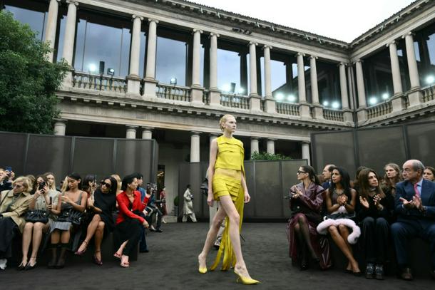 Amid the quiet luxury and easy elegance, Milan is also known for its over-the-top glamour, epitomised by Roberto Cavalli, which showed its “Gold Obsession” collection on a gold catwalk.