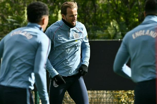 England captain Harry Kane (centre) takes part in a training session