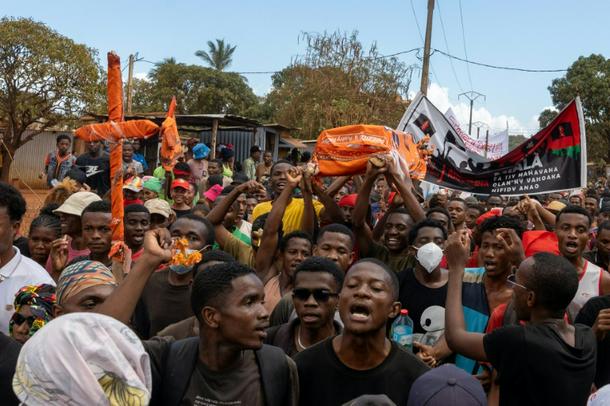 In the northern city of Antsiranana, hundreds of students also marched, waving placards and carrying a mock coffin covered with orange fabric emblazoned with the image of Rajoelina, AFP journalists saw.