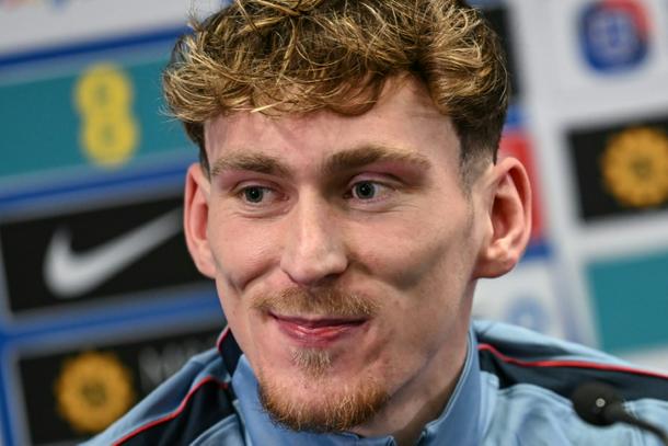 Everton midfielder James Garner attends a press conference at England's St George's Park training base ahead of international football friendlies against Uruguay and Japan