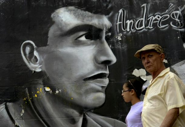 A mural in Medellin depicts late Colombian footballer Andres Escobar