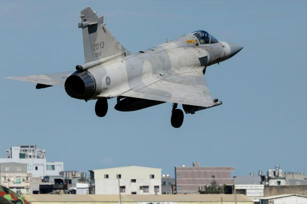 A Taiwanese air force Mirage 2000 fighter jet takes off from Hsinchu Air Base