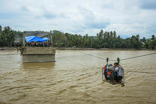 Damage to infrastructure including many broken bridges is making relief work in Indonesia difficult