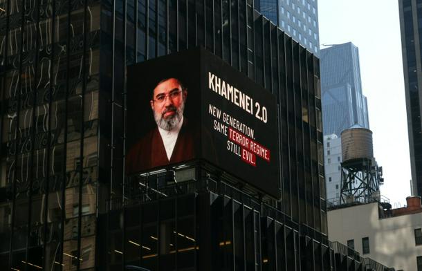An Israeli message in New York's Times Square warns against Mojtaba Khamenei, who was appointed as the new Supreme Leader of Iran following Israel's killing of his father