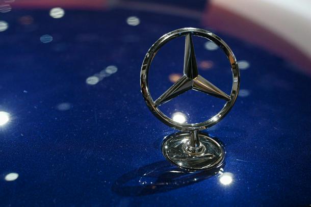 A Mercedes-Benz crest is seen on one of the German automaker's cars at the Beijing Auto Show in Beijing