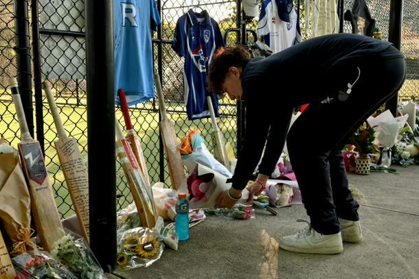 Flowers and cricket bats were placed at the Ferntree Gully Cricket Club where the accident occurred on Tuesday.