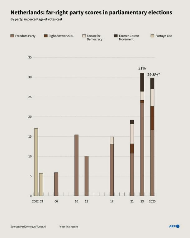 “The radical right as a whole hasn’t really lost, due to the gains of JA21 and FvD,” Sarah de Lange, Professor of Dutch Politics at Leiden University, told AFP.