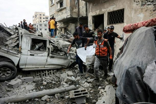 Palestinians recover bodies from the rubble after Israel launched another series of air strikes in response to the killing of a soldier