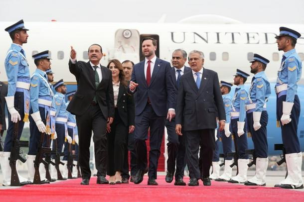 US Vice President JD Vance (C) was greeted by Pakistani leadership ahead of peace talks with Iran