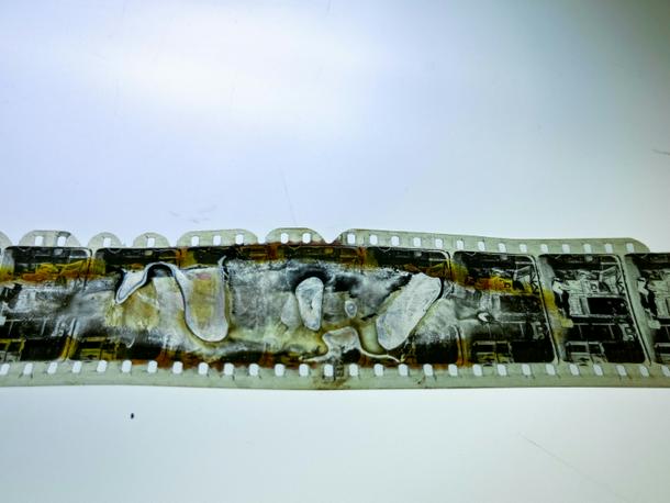 A deteriorated portion of the film reel of "Gugusse and the Automaton"