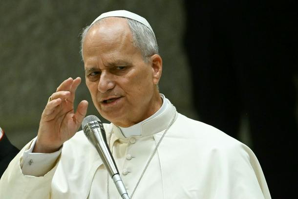 Huge portraits of the seven were unfurled from windows over the square as Leo, the first US pope, exited St Peter’s Basilica dressed in a ceremonial white cassock with a white mitre on his head, preceded by white-clad bishops and cardinals.